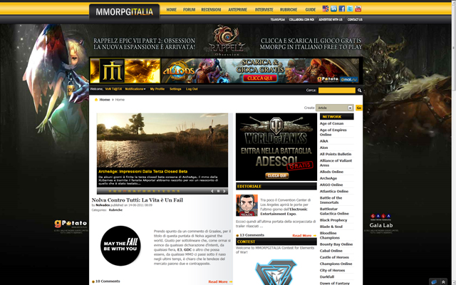 MMORPG ITALIA è il primo e più grande portale italiano dedicato agli MMORPG; aperto nel 2001 conta al momento più di 118.000 utenti registrati. Sul portale potrete trovare tutti i giorni le news sempre aggiornate in lingua italiana per gli mmorpg del momento. Tutte le news sono commentabili per cui ogni parere è ben accettato.