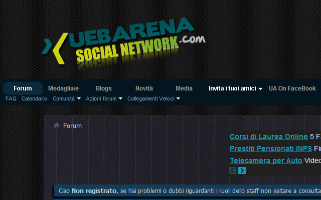 In questo modo su Uebarena troverete davvero di tutto, e trattato nel modo migliore! Vieni a trovarci anche tu! Ti divertirai un mondo! Conoscerai nuovi amici con i tuoi stessi interessi e scoprirai tante nuove funzionalità implementate nel social network (profilo con bacheca, amici in comune, possibilità di usare nickname e nome reale, mi piace, grazie, non mi piace e tante altre cose che su Facebook desideri e non hai)!