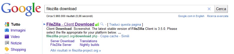 Andate sul motore di ricerca e scrivete filezilla download ed entrate nel sito, comunque vi lascio il link http://filezilla-project.org/download.php: