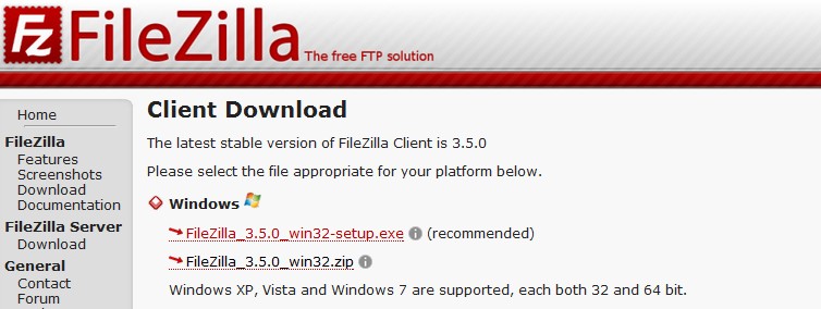 Quando siete dentro al sito, dovete trovare il file di installazione di windows ( se avete un o.s windows ), poi cliccate su FileZilla_3.5.0_win32-setup.exe: