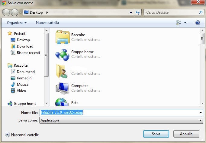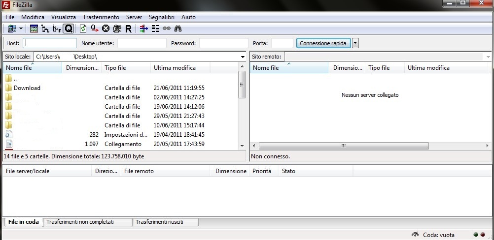 A questo punto il programma è installato, andate sul desktop, cliccate sull'icona di filezilla: