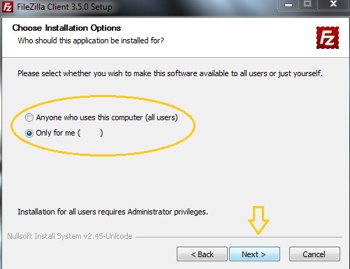 Poi dovrete selezionare chi usa questo programma, io ho selezionato l'opzione only for me perchè sono l'unico che utilizza il programma, dopo che avrete fatto cliccate su next :