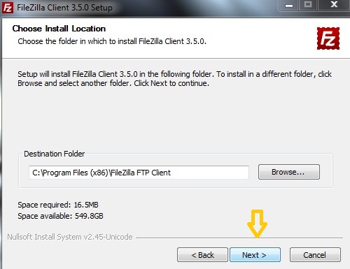 Dopo vi chiederà dove installare il programma, lasciate stare e cliccate su next: