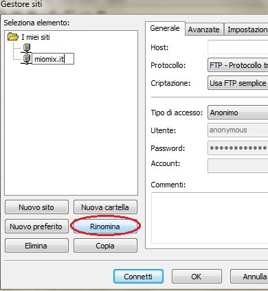 Rinominate il vostro sito.