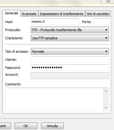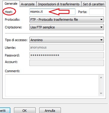 Nel host scrivete il dominio del vostro sito (es. miomix.it).