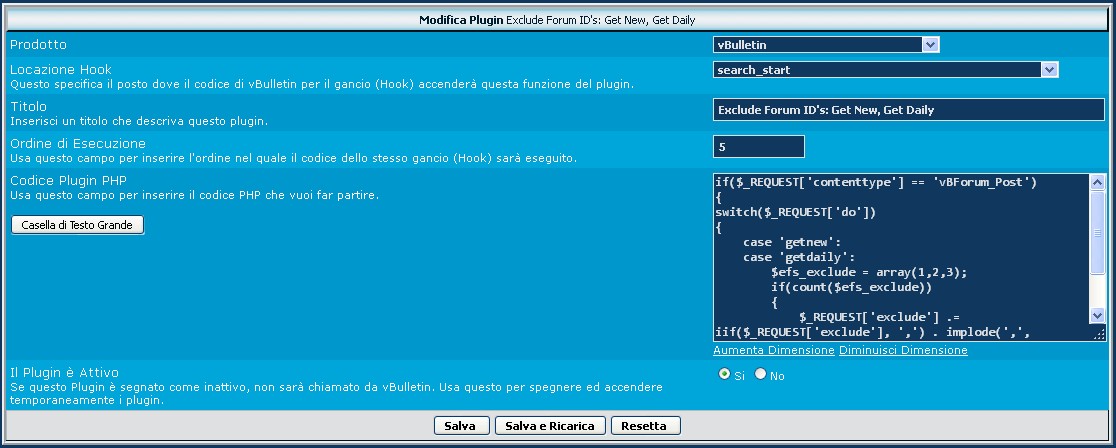 Prima di tutto, questo codice funziona soltanto dalla versione vBulletin 4.1.5 in poi. Le versioni precedenti utilizzano un altro metodo e altre variabili.
