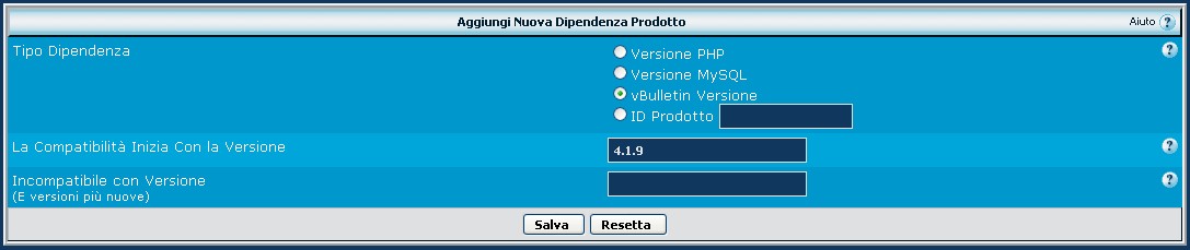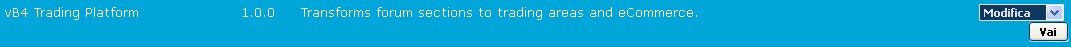 Sulla destra clicchiamo sul pulsante Modifica. Si torna al prodotto, dove si possono ora inserire i parametri. Giusto per evitare problemi di vario genere, impostiamo la versione vBulletin in uso. Non è obbligatorio, ma se ci sono problemi di compatibilità, è probabile che si cerca di eseguire il prodotto su una versione vBulletin meno recente della versione consigliata. Dopo il cambiamento salviamo.