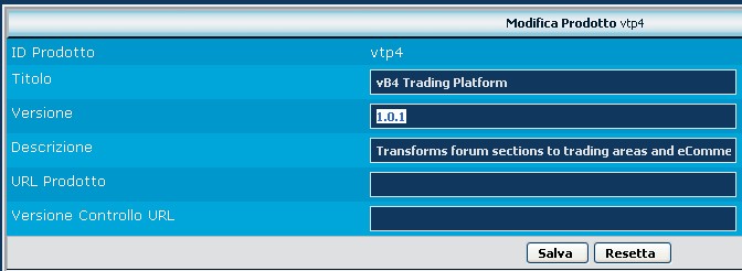Dopo il salvataggio il prodotto ha una nuova versione in lista: