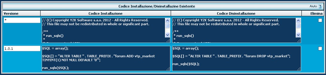 Rientriamo in modifica e aggiungiamo il codice per l'aggiornamento di versione:
