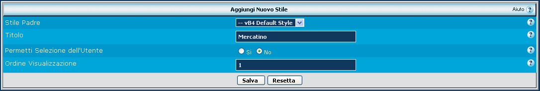 In gestione stili, aggiungiamo uno dedicato al mercatino, figlio dello stile che utilizziamo normalmente nel forum, a meno che non si desidera crearne uno completamente nuovo: