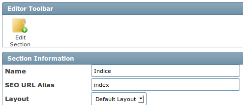 e impostiamo anche la URL della sezione HOME del CMS, cliccando sulla pennina accanto al titolo: