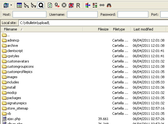 Per l'invio dei file usiamo un client FTP affidabile, come ad esempio FileZilla. E' di particolare interesse che sia in grado di riconoscere il tipo di server e problematiche relative alla sostituzione di file. Alcuni server ad esempio non consentono la sostituzione diretta, ma soltanto tramite esplicita eliminazione dei file e successivo invio. Inoltre è necessario poter impostare la modalità dati, che dovrà essere sempre binaria. Da quando è cambiato il sistema di installazione e upgrade, è necessario inviare sempre tutti i file del pacchetto vBulletin. L'invio parziale può causare problemi durante l'aggiornamento o installazione.