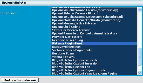 Prima di tutto dobbiamo attivare il sistema dei plugin e prodotti nelle opzioni di vBulletin. Per questo andiamo nell'ACP nelle opzioni e accediamo al Sistema Plugin/Hook:
